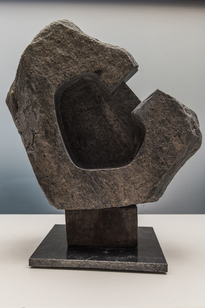 Sculptuur van het harde kwartsiet, een ruwe steen uit Noorwegen met een mooie eigen vorm die ik heb proberen te versterken met een uitholling.