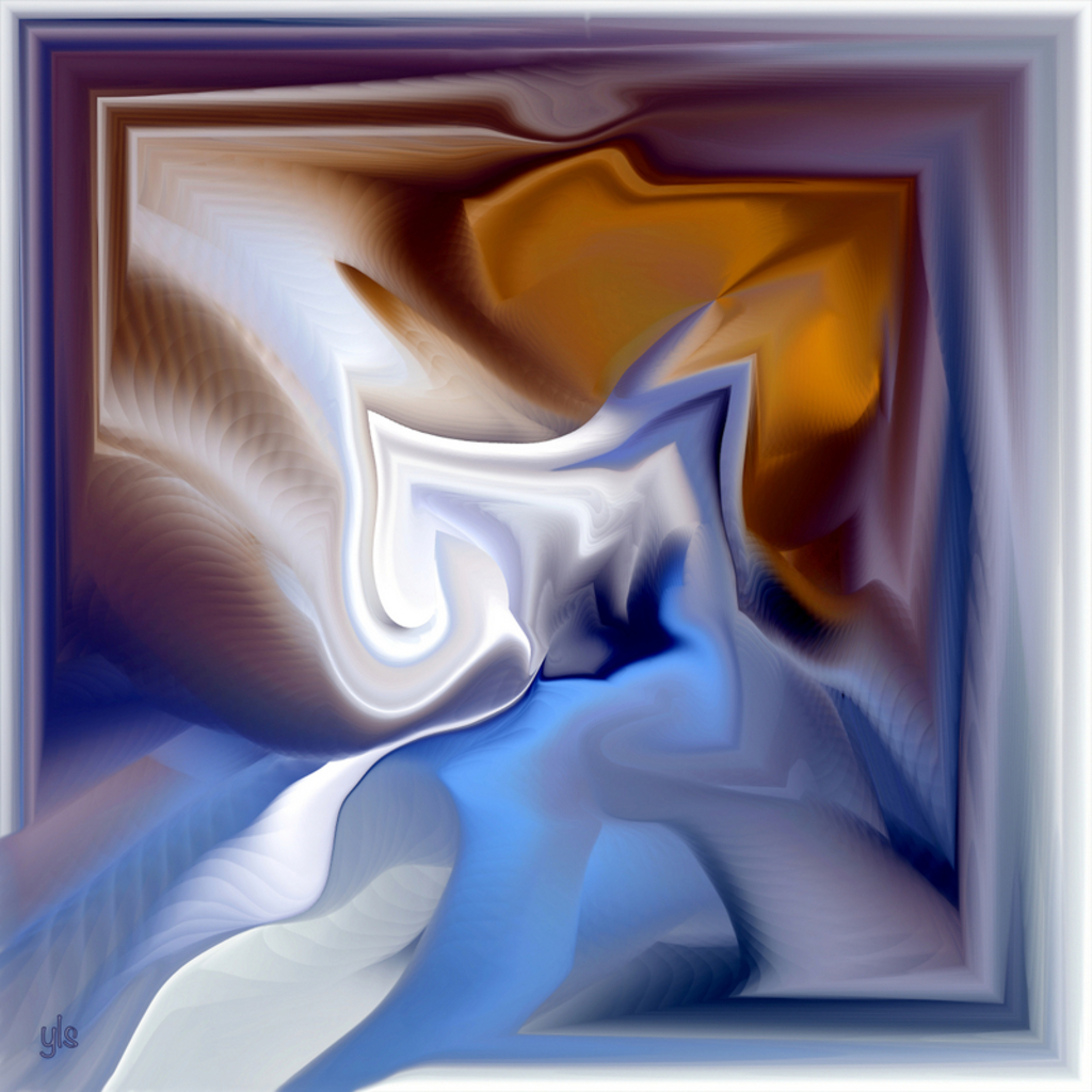 Plexiglas Foto Museumkwaliteit Dibond 6mm Artlouise Digitaal Bewerkt Oker Oranje Terra Blauw Wit Bruin Grijs