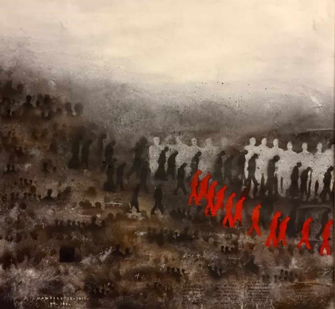 Vluchtelingen-schilderijen; beelden uit de wereld;