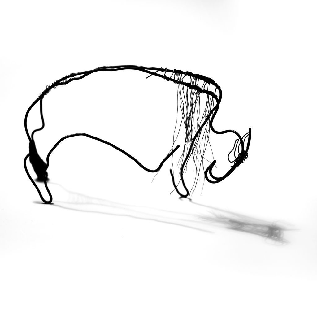 Stier Wisent Dier Draad Wire Bull Bizon Schets Tekening Zwart-wit Metaal