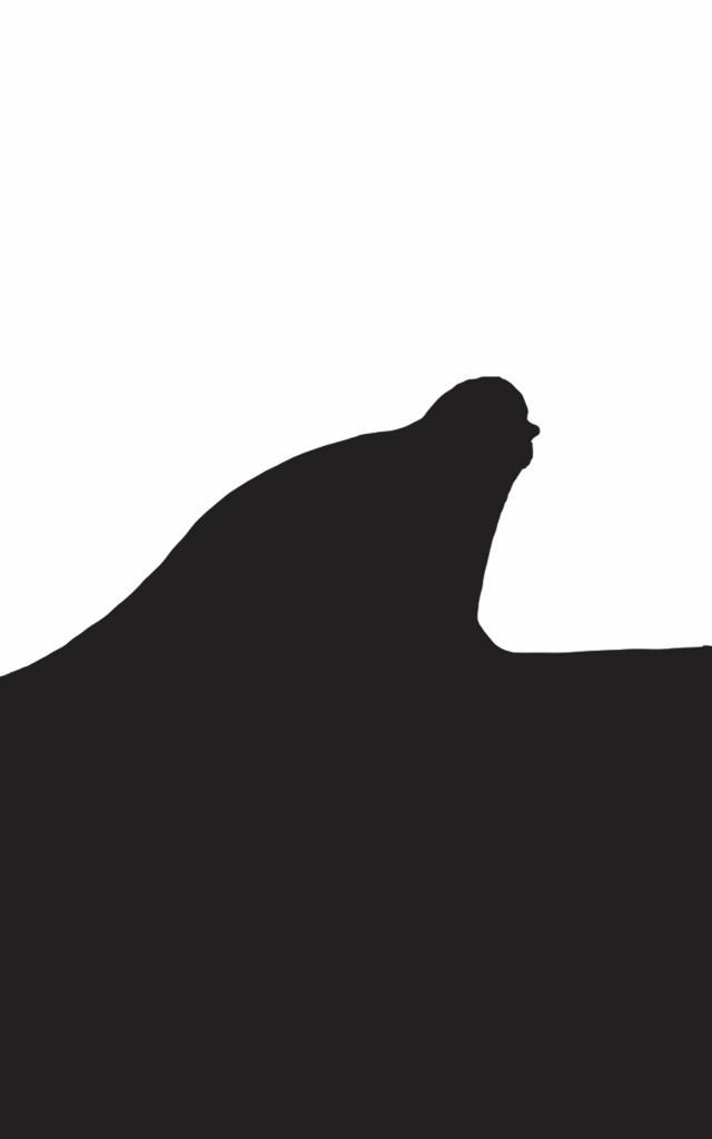 zwart silhouet van een man die op de grond knielt tegen witte achtergrond