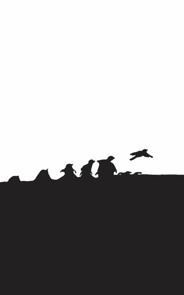 vogel in zwart die zich langzaam vrijmaakt. Tegen witte achtergrond