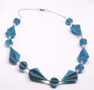 Willy Keuvelaar (1949) was 30 jaar activiteitenbegeleider en daarom gewend iets te creëren met gebruikmaking van materiaal dat voor handen is. Na de de creatieve opleiding voor activiteitenbegeleider volgde ze ieder jaar een andere cursus op creatief gebied. Vaak weer uitkomend bij etsen en boetseren. Zij werkt geregeld in de grafische werkplaats van de SKVR . Tijdens het etsen blijft er vaak een ets liggen die niet helemaal aan de eisen voldoet. Zonde van het mooie papier en de grafische afbeelding. Zo ontstond het idee om er sieraden van te maken. Door een speciale verlijming en een coating zijn de sieraden stevig als hout en watervast. Haar PET fles sieraden geven de illusie dat er iets gedaan kan worden aan de plastic soep. PET flessen worden in de fabriek met warme lucht opgeblazen.