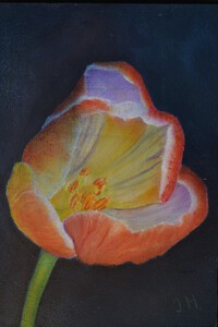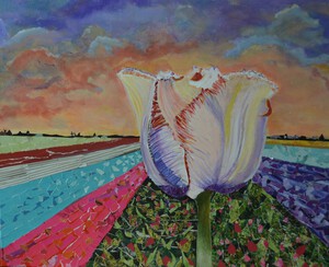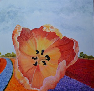 Het begint met schikken en herschikken van vazen totdat ik tevreden ben met de compositie. Daarna maak ik een aantal foto's om er uiteindelijk een uit te kiezen om te gaan schilderen. Eerst maak ik een onderschildering in rauwe omber en titaan wit. Daarna bouw ik het schilderij op in lagen veelal transparante verf. Dit schilderij is gemaakt in de techniek van fijnschilderen en is te koop via de Kunstkerk Dijk en Waard in Sint-Pancras.
