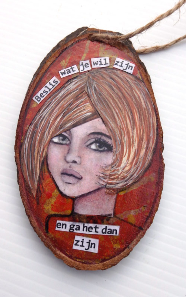 Vrouwen Modern Hout Art Mixed Media Gemengde Technieken Collage Meisjes Girls Houten Arts Colors Paintings Color Colorful Wooden Poetry Wood Artwork Takje Schijfje Handmade Pendant