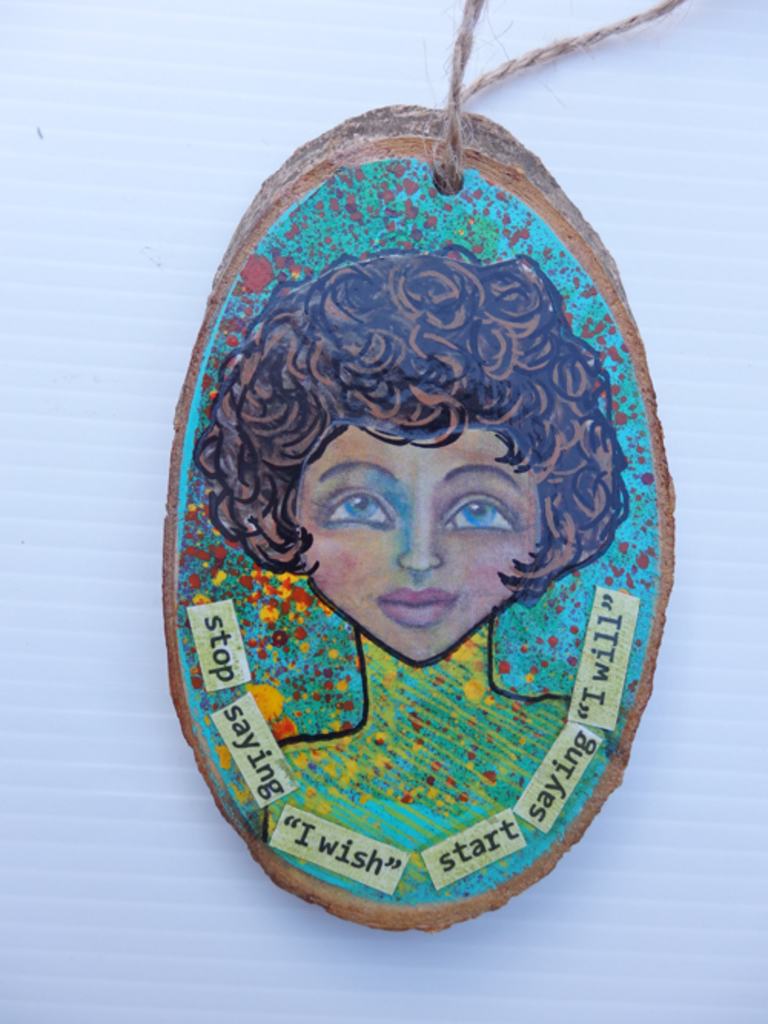 Vrouwen Modern Hout Art Mixed Media Gemengde Technieken Collage Meisjes Girls Houten Arts Colors Paintings Color Colorful Wooden Poetry Wood Artwork Takje Schijfje Handmade Pendant