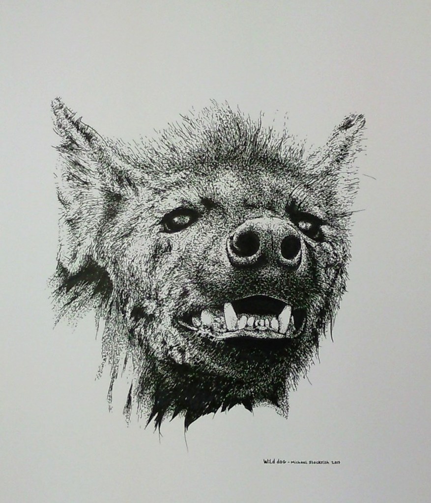 Wild Dog Wilde Hond Michael Stockfish Tekening Drawing Dieren Zwartwit