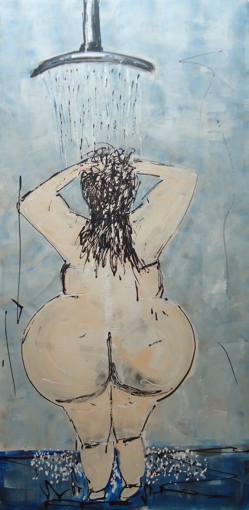 Grijs Zwart Blauw Vrouw Naakt Douche Roland Rechthoek Rolandrongenart Rongen Huiskleur