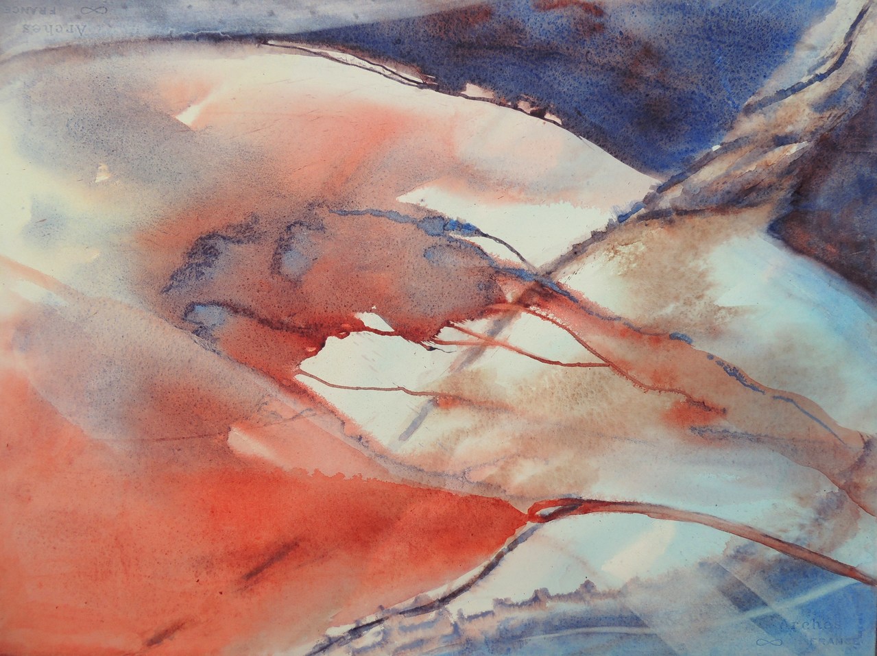 ontstaan vanuit vrije associatie en fantasie op basis van de gekozen kleuren rood en blauw. Het wordt dan een spannende zoektocht.