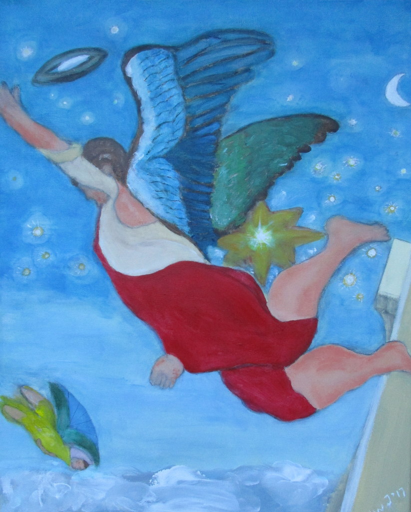 2 Engelen, w.o. reddende engel, evenwicht. Sterrenhemel naar van Gogh, hoekpunt naar Alma Tadema