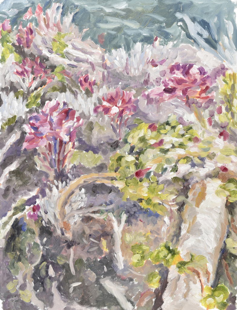 Mijn werk gaat over het landschap waarin ik verlang naar sereniteit. Dit is wat ik mis in Nederland, dat steeds voller en voller wordt. Met het verdwijnen van de gebieden die ooit nog groen en leeg waren, verdwijnen ook mijn herinneringen. Om deze momenten vast te leggen, schilder ik zowel gebieden in binnen- en buitenland waar ik naar terug verlang. Daarom laat ik in mijn werk het landschap verdwijnen in de verf. Schilderen biedt mij de mogelijkheid om de waarneembare werkelijkheid te verbinden met mijn eigen interpretatie van het landschap. Hiermee wil ik mijn waarneming combineren met mijn verlangen naar sereniteit en daarnaast samenbrengen met mijn ambitie voor schilderen. De geur van de olieverf, het mengen van de kleuren en elke streep die ik op het doek zet, geven mij een gevoel va