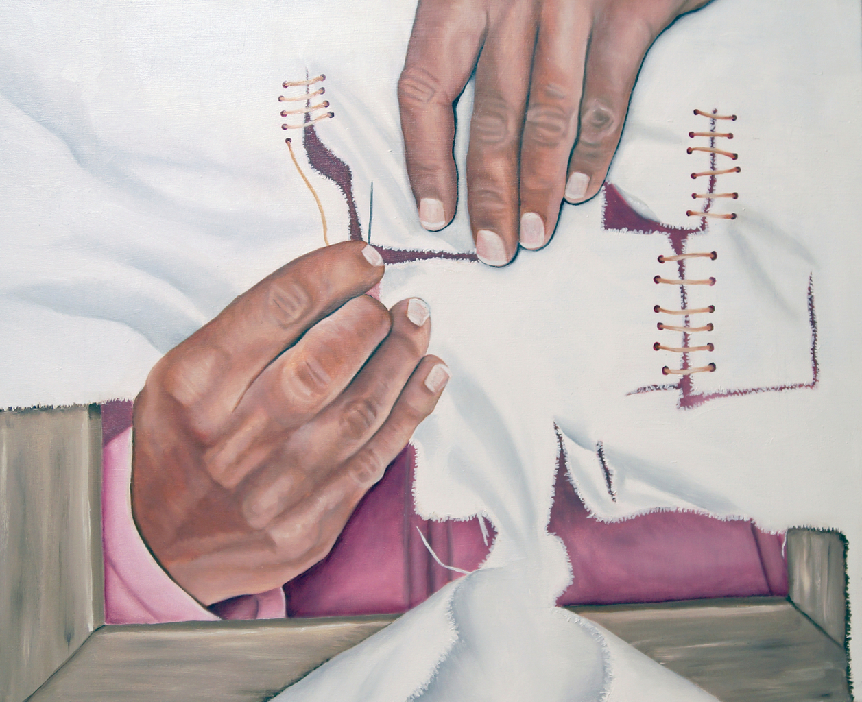 Na een periode geen inspiratie gehad te hebben om te schilderen nu opeens weer ideeen maar geen doek. Dit schilderij komt na " het verschrikkelijke wit" .