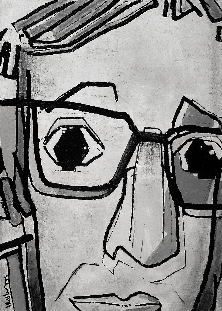 Schilderij Abstract Portret Grijstinten Expressief Kleurrijk Canvas Acrylic Cobra Woody Allen