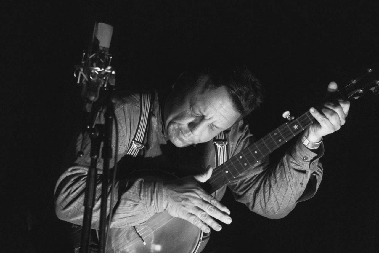 Man Muzikant Concert Optreden Banjo Muziek Zwart Wit