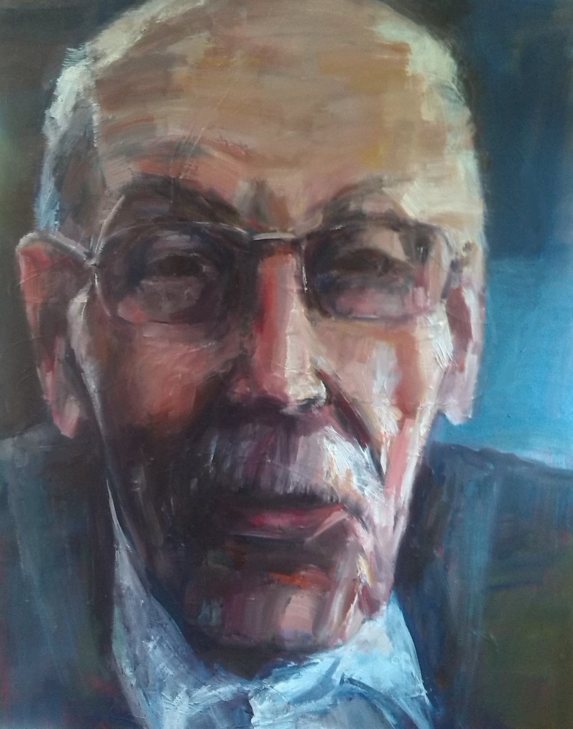 Portret Man Olieverf Oud Linnen Studie Alzheimer