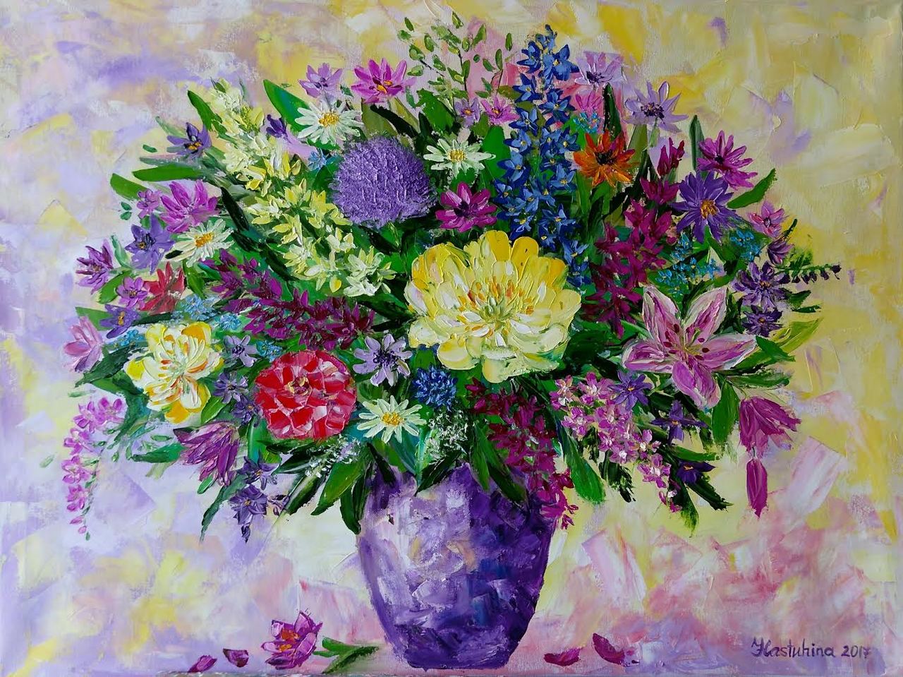 Mijn naam is Jelena Castuhina, geboren in 1977 in Letland. In 2010 verhuisde ik met mijn gezin naar Nederland. Nu wil ik hier verder mijn passie voor kunst voortbrengen. Ik was altijd gefascineerd door natuur en de ongelooflijke kleuren ervan, net zoals mensen en hun unieke gezichten. Ik streef graag ernaar om de schoonheid te vinden in alles wat om me heen zit. In Letland heb ik een HBO studie afgerond als beeldende kunst lerares. Net als in Letland, leer ik ook in Nederland de kinderen om het mooie te zien in de simpelste dingen om hun heen. Van de kinderen zelf leer ik ook hoe zij de wereld zien. Ik werk het liefst met olieverf, door het plastische en het speelse ervan. Het helpt me om het juiste beeld die ik in gedachte heb te visualiseren in mijn werken.