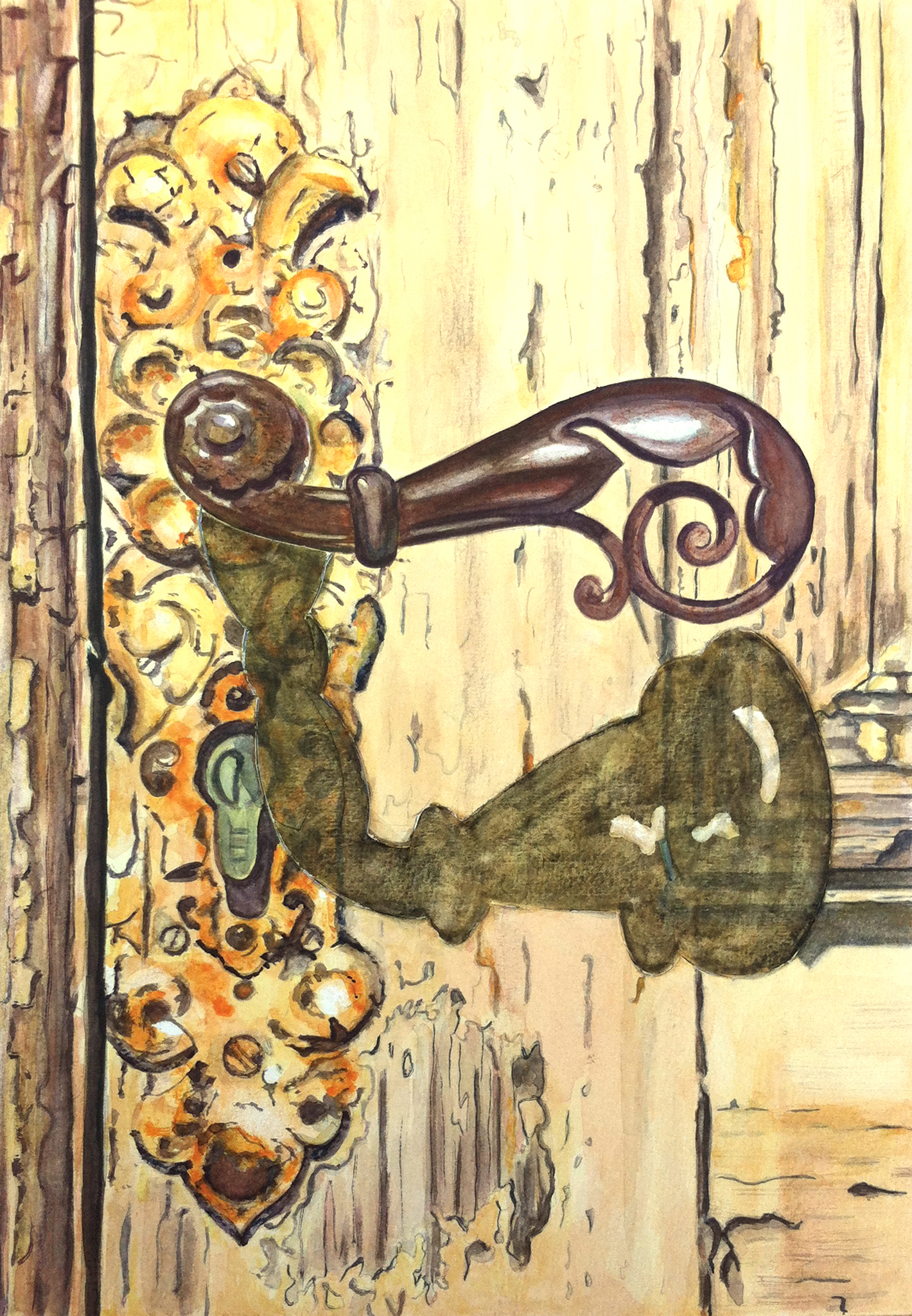 Geel Aquarel Oud Realisme Roest Deur Deurknop Klink