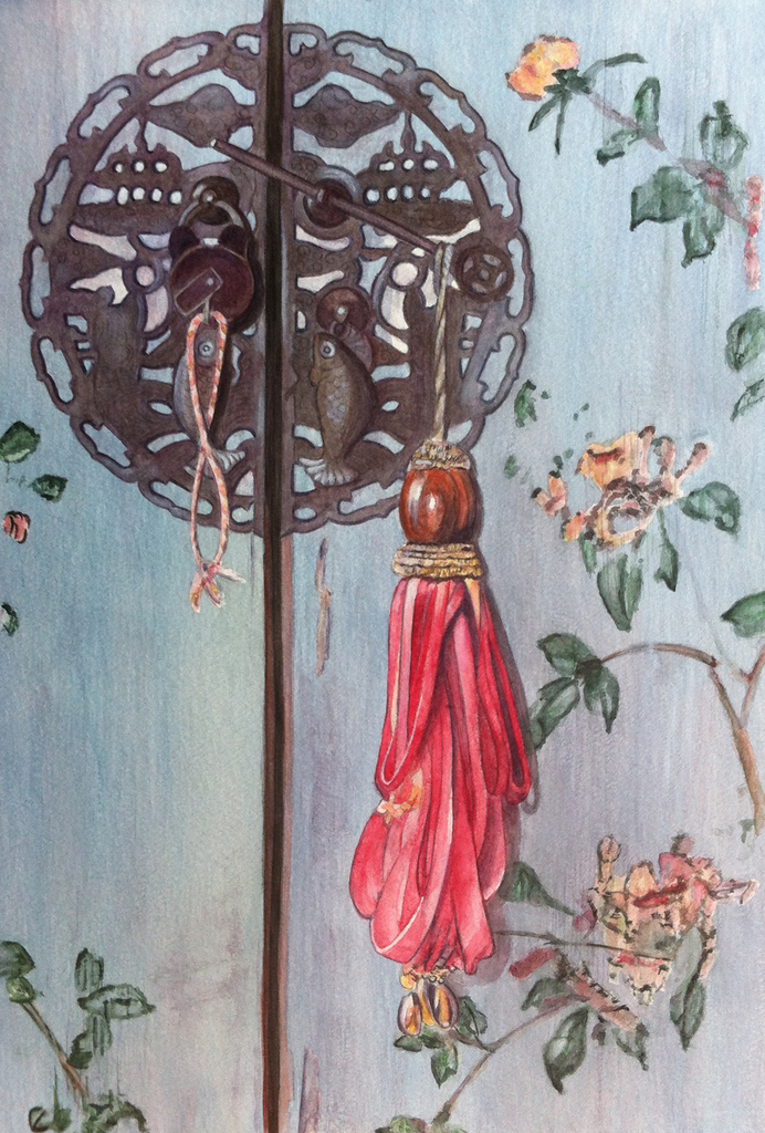 Aziatische kastdeur met prachtige versieringen...