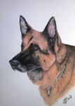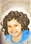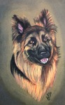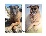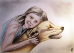 Portret van een meisje met haar hond. De liefde en vriendschap die ze voor elkaar voelen spreekt hier uit. Het portret is ingelijst.
