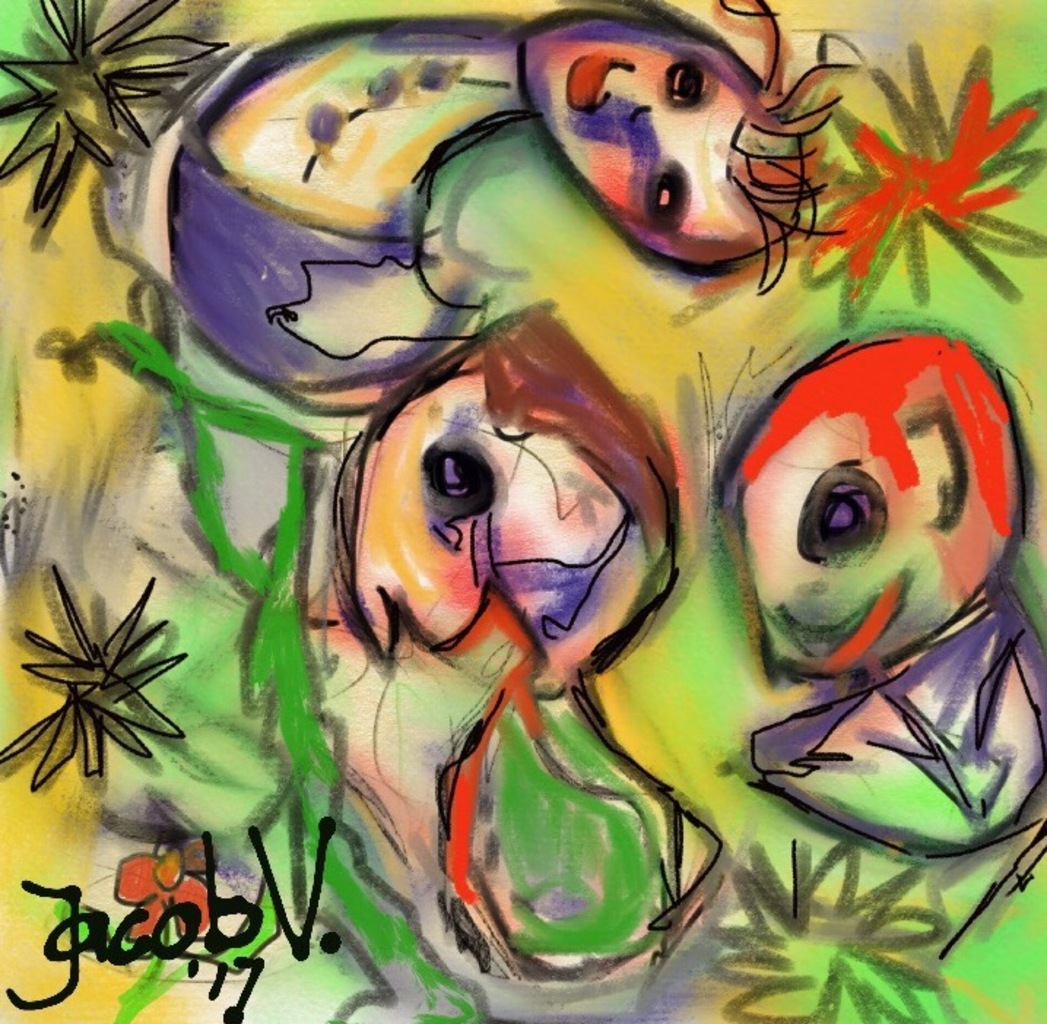 Drie personen verbeeld en gemaakt op de iPad. Een kleurenpracht voor de ogen! De prijs is afhankelijk van het formaat fotoprint.