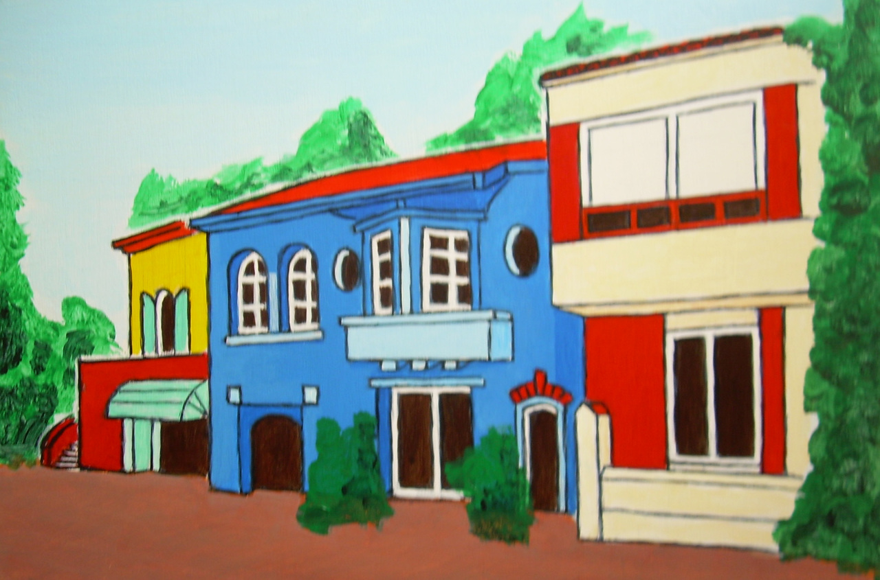 Mijn schilderijen bestaan uit gebouwen en mensen.