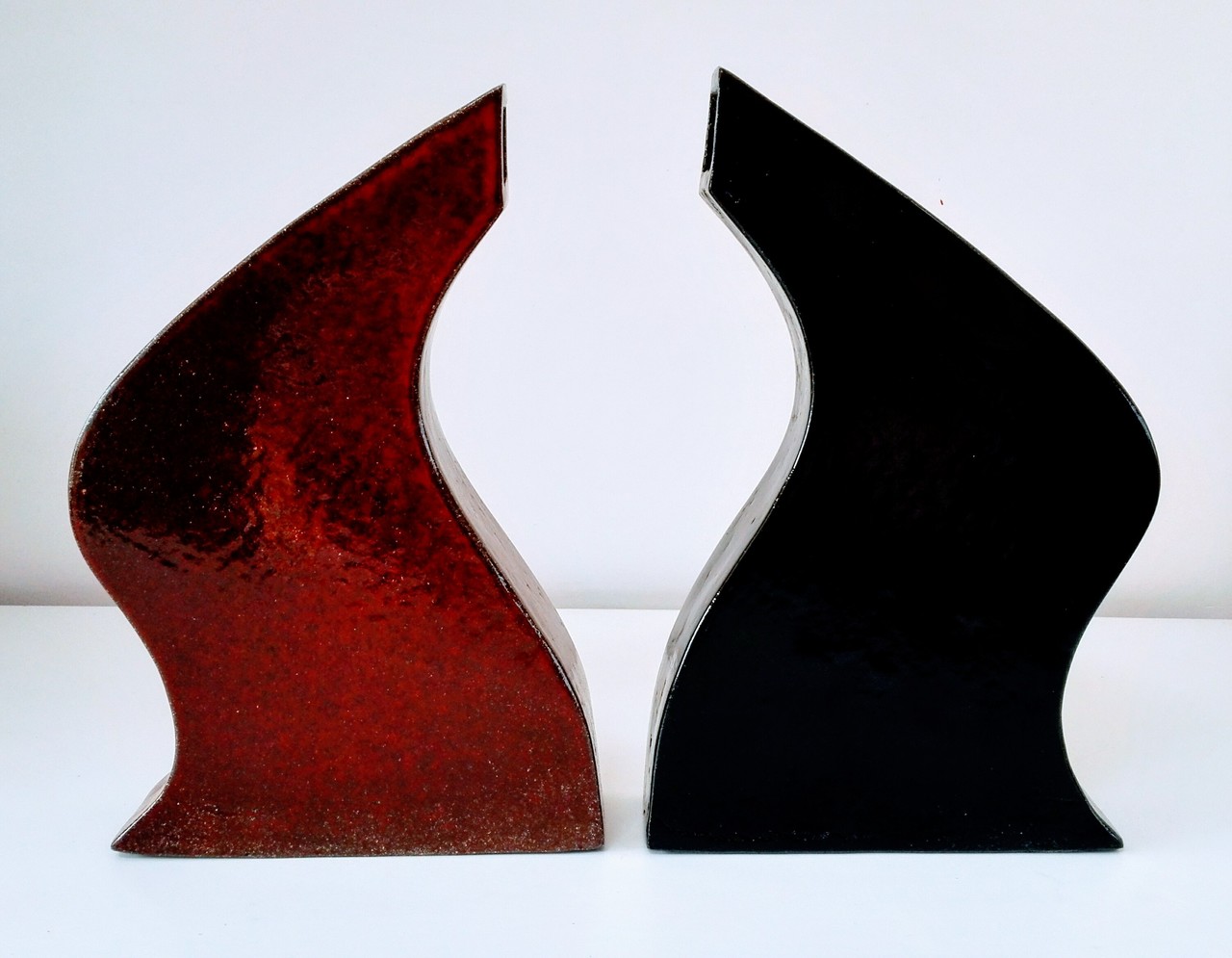 duo sculpturen donkerrood/ zwart samen te koop