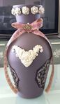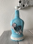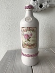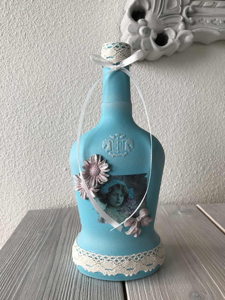 glazen likeur fles getransformeerd tot vintage, acryl, klei, papier en kant.