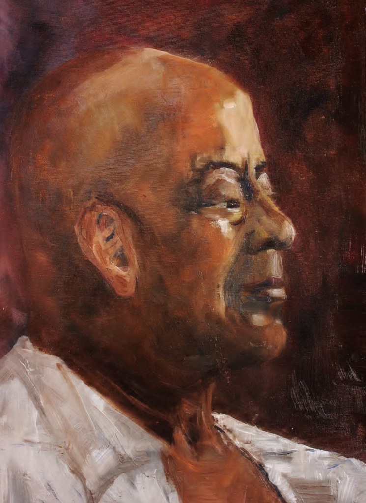 Man Wit Shirt Olieverf Portret Ombers Sienna
