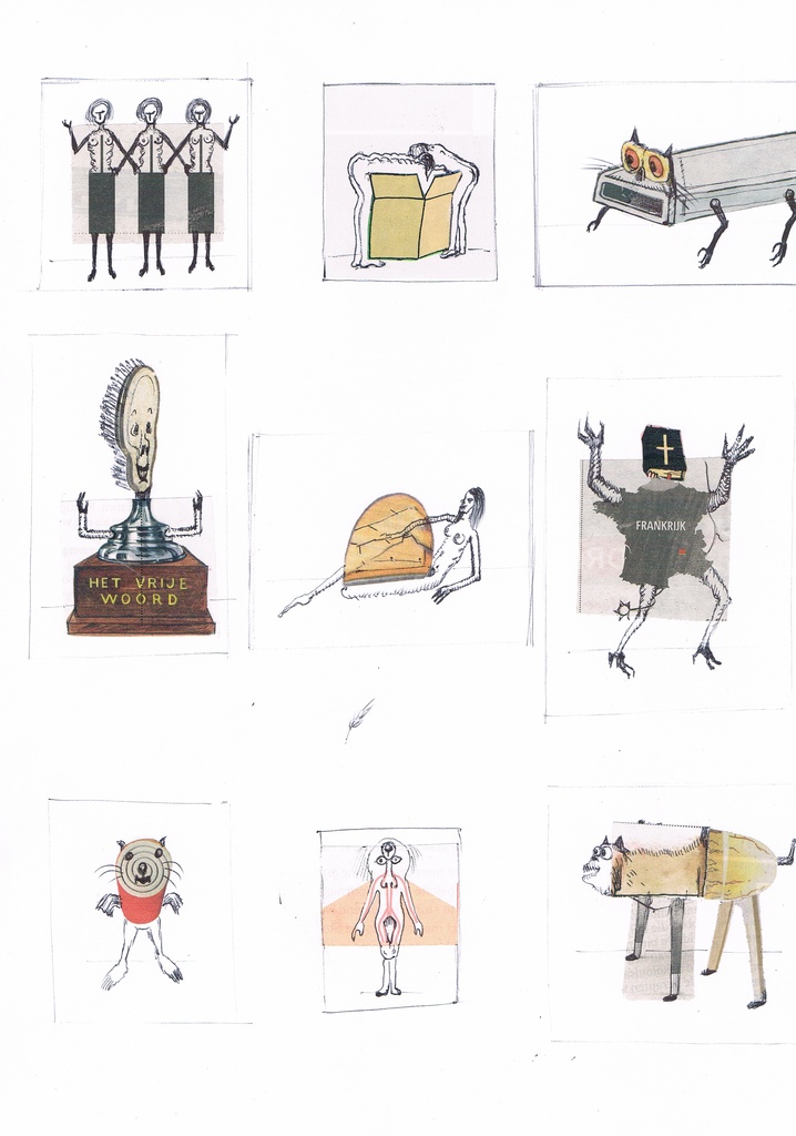 Fantasietekening met collagemateriaal.