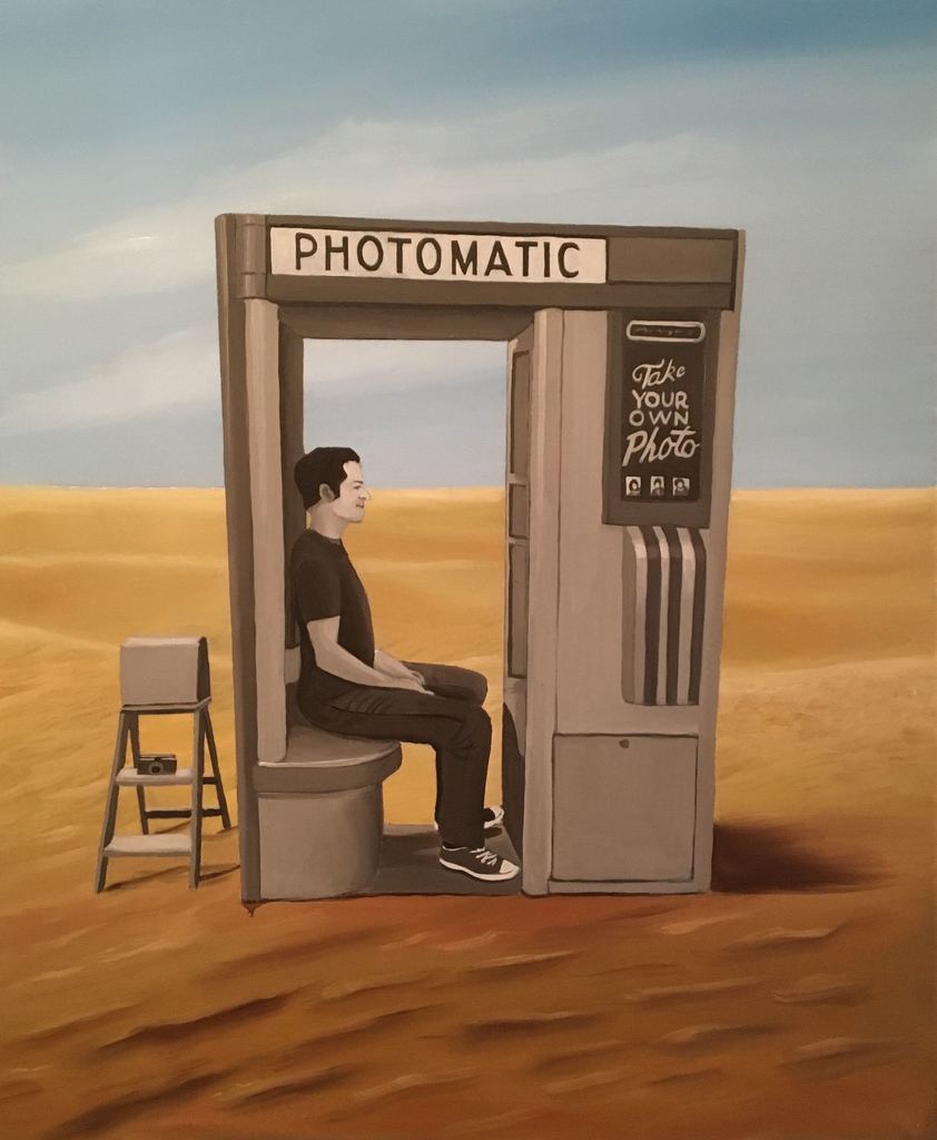 Een fotocabine om een selfie te maken in de woestijn. Het is zeker niet alledaags maar ergens zou het wel mogelijk zijn. Anderzijds kan het ook een illusie zijn, bevangen door de grote hitte is het reëel dat men gaat ijlen.