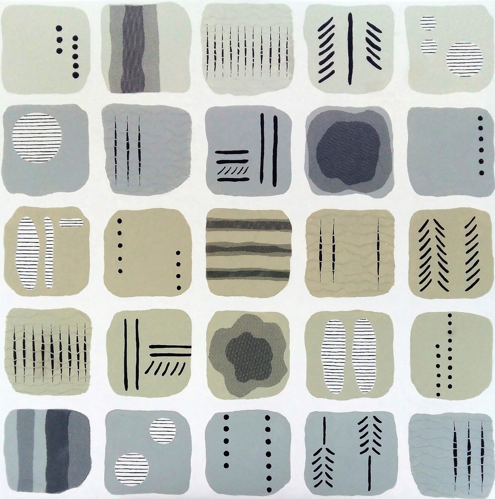 Door de herhaling van vormen, kleuren en technieken ontstaat een ritme. De herhaling zorgt ervoor dat de vlakken elkaar versterken. De vormen hebben een Tribal-achtig karakter.