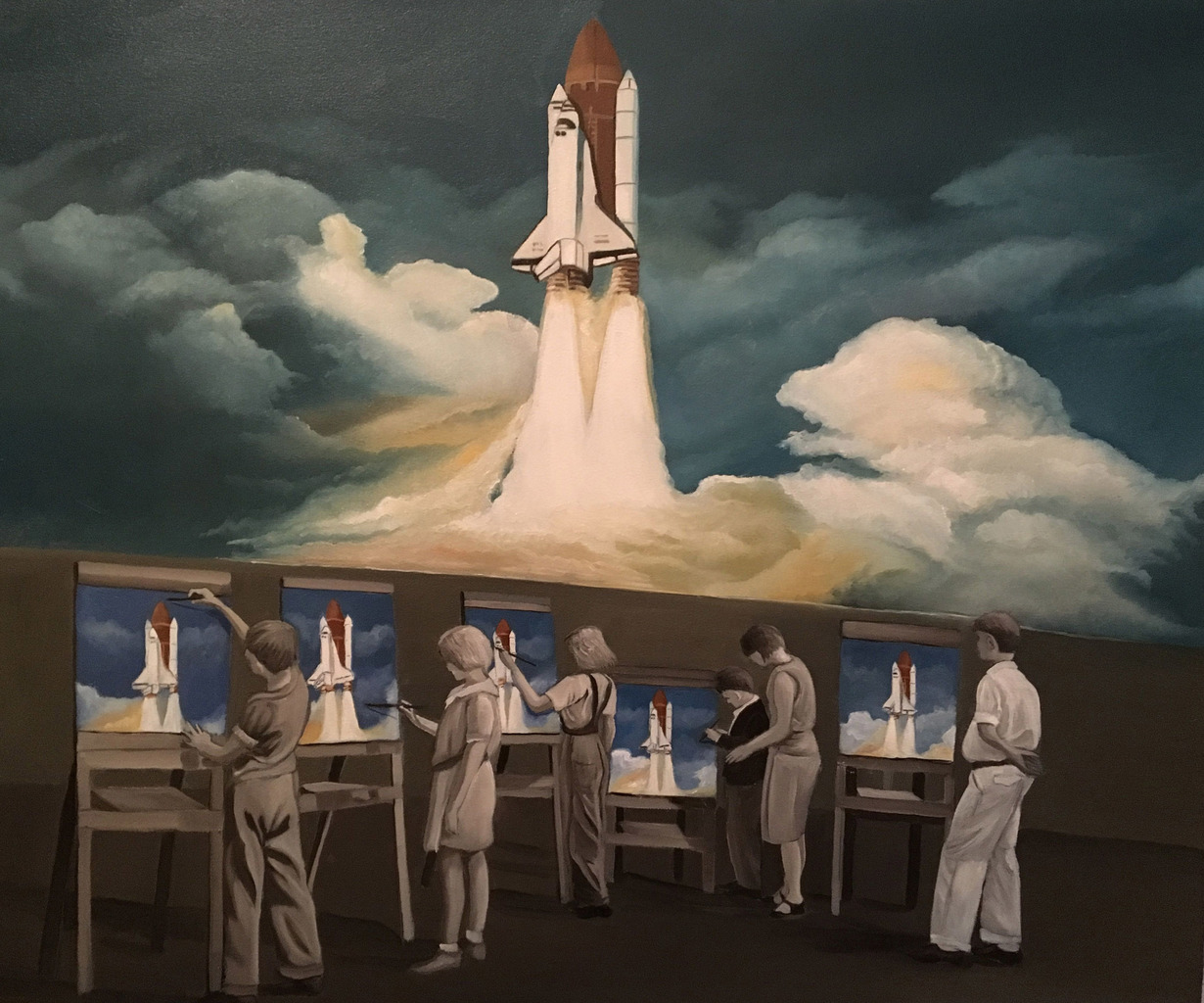 Kunst en wetenschap staan nooit ver weg van elkaar. Sommige uitvindingen zoals de space shuttle hebben iets artistiek over zich. In dit tafereel vormt het dan ook de inspiratiebron voor enkele studenten in de beeldende kunsten.