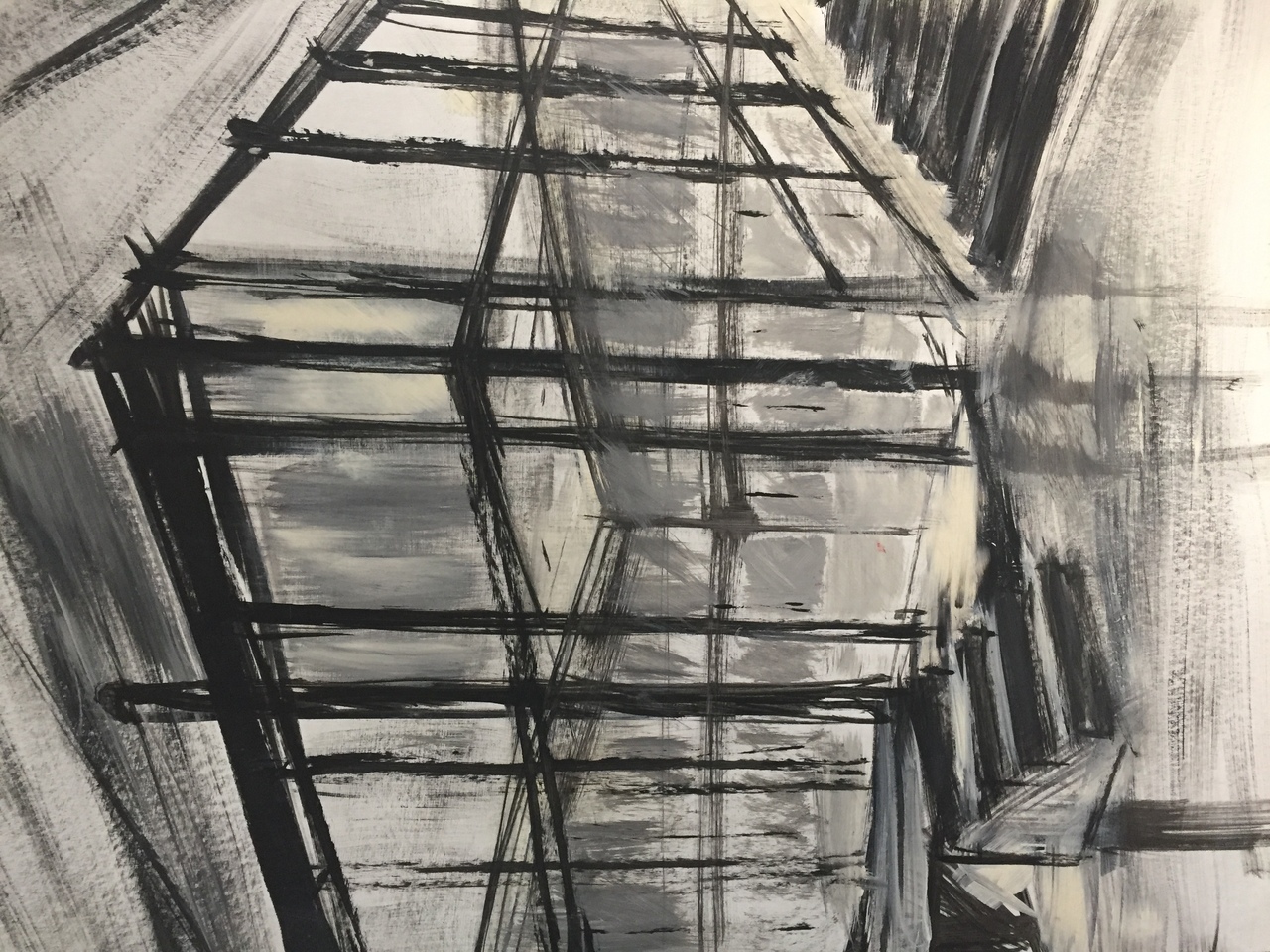 Gebouw Gouache Realistisch Zwart / Wit Grijs