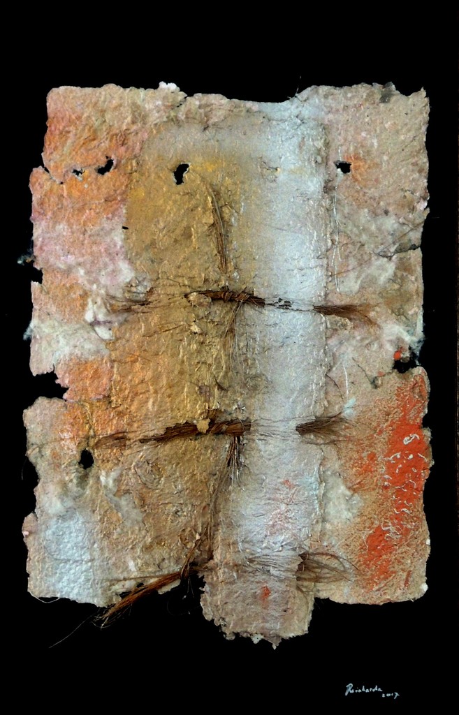 Histoire d’Egypt 96x71 in Egyptische lijst is verhalend ( handgeschept papier) over een periode. Histoire d'Egypt 96x71 in Egyptian frame is narrative (handmade paper) over a period. Geïnspireerd op de fraaie egyptische met hout opengewerkte lijst. Niet op foto. Inspired by the beautiful Egyptian wood-cut list.Not on this picture. Inspiré par le beau cadre ajourées en bois égyptien.Pas sur le photo.