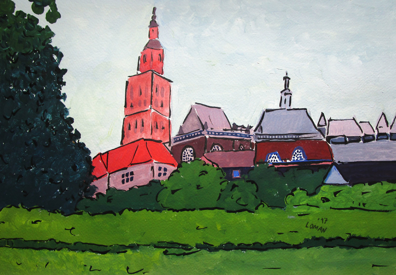 Karel Loman schildert expressief. Zijn landschappen en stads- en dorpsgezichten zet hij in heldere kleuren op papier. De sfeer van het landschap staat bij hem voorop. Loman werkt voornamelijk met temperaverf, aangevuld met inkt of potlood.
