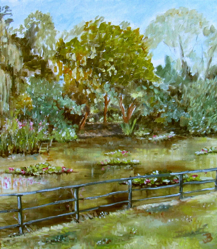 Olieverf Landschap Park Zomer Waterlelies Realistisch