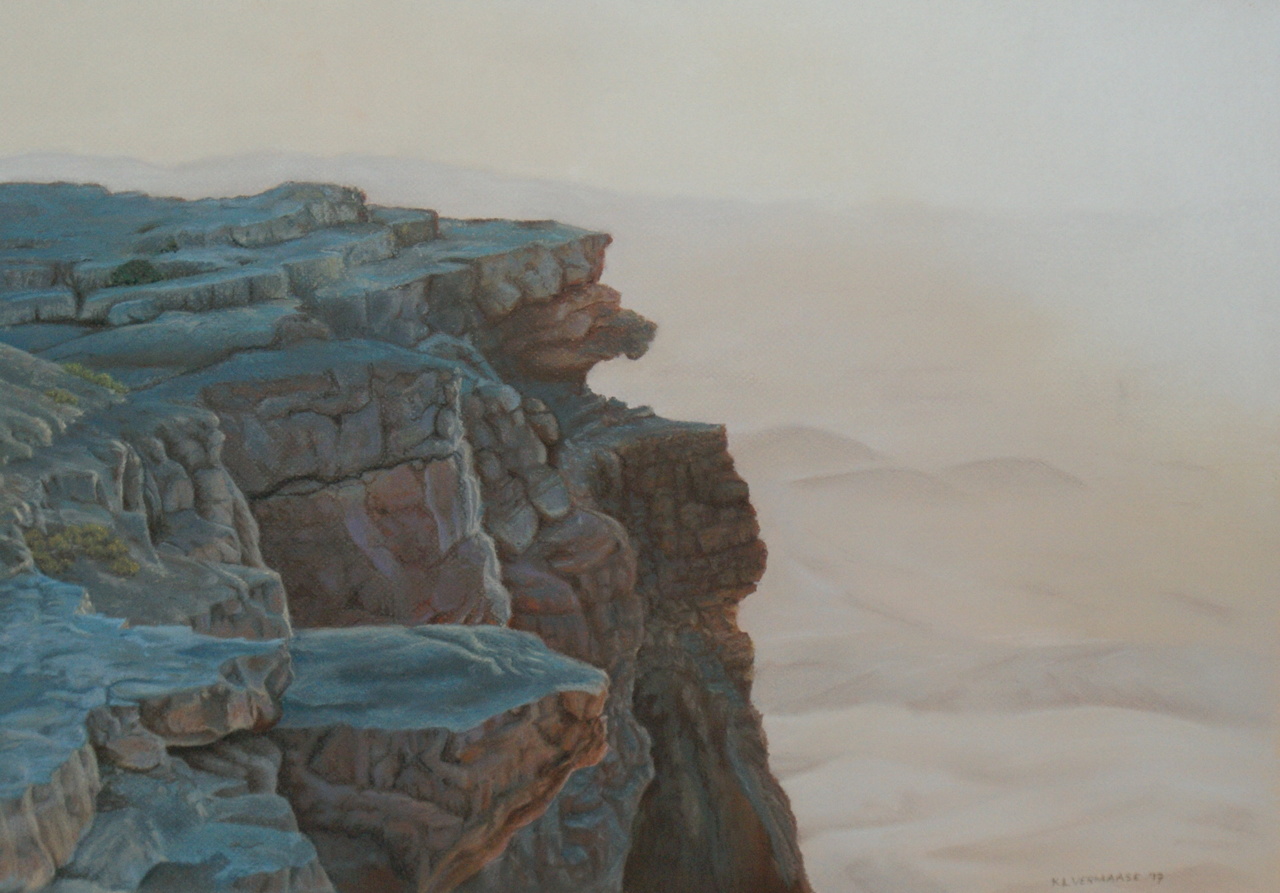 Desolaat, dus leeg. Leeg, dus geen komen en gaan. Dus geen tijdsbeleving. Geen andere tijdsbeleving dan de wind die de rotsen gestaag doet slijten. Afbeelding: naar een natuurfoto.