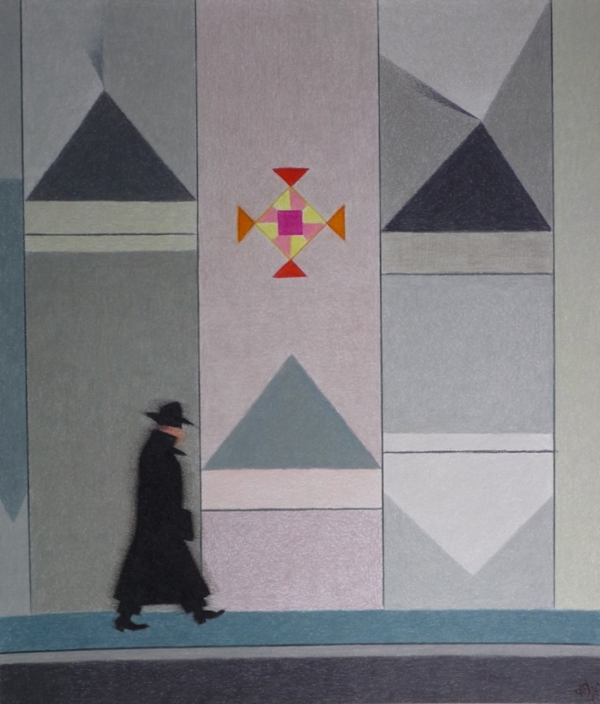 grijze compositie met wandelaar