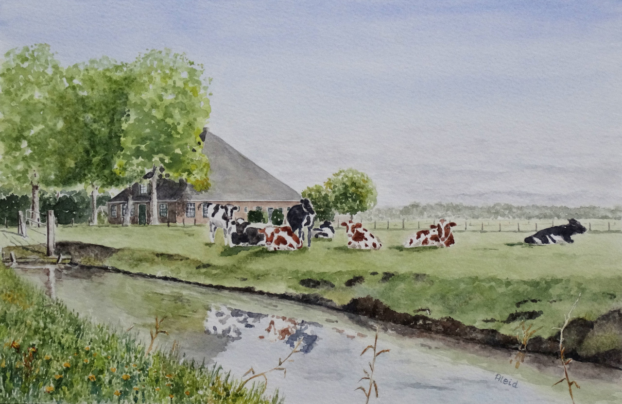 Landschap Aquarel Koeien Schermerhorn