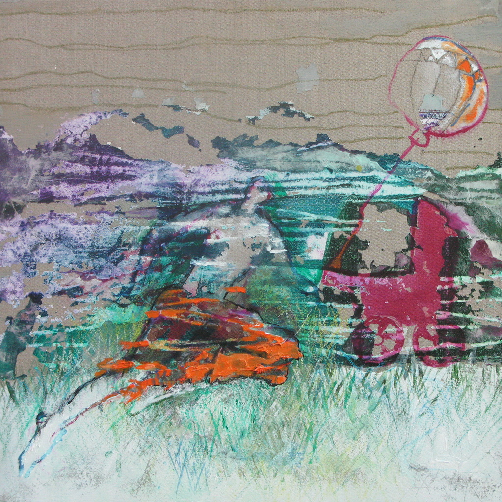 Oranje Groen Kleurig Ballon Vierkant Roze Mensfiguur Kinderwagen