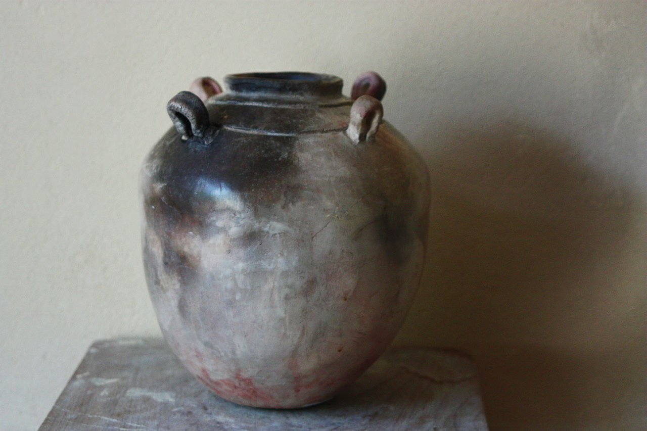 Na de eerste stook is de pot bewerkt met organisch materiaal en omwikkeld met aluminium folie. Het geheel wordt geplaatst in een ton gevuld met hout en aangestoken. Als alles goed brandt wordt het vuur afgesloten met een deksel. Het uiteindelijke resultaat laat het vlammenspel en inwerking van het organisch materiaal zien.