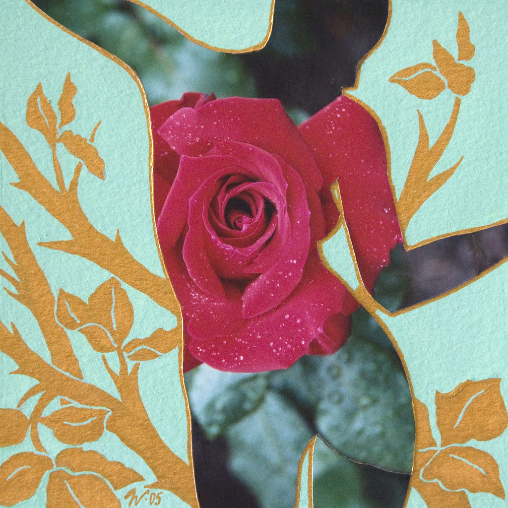 Foto Rood Blauw Rose Gold Goud Groen Vrouw Blue Mixed Media Papier Woman Gouache Bloem Red Green Collage Flower Paper Paint Roos Photo Picture