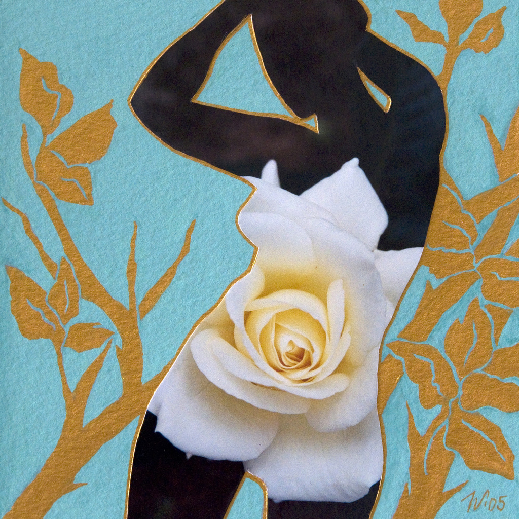 Wit Foto Blauw Rose Gold Goud Groen Vrouw Blue Mixed Media Papier Woman Gouache Bloem Green Collage White Flower Paper Paint Roos Photo Picture