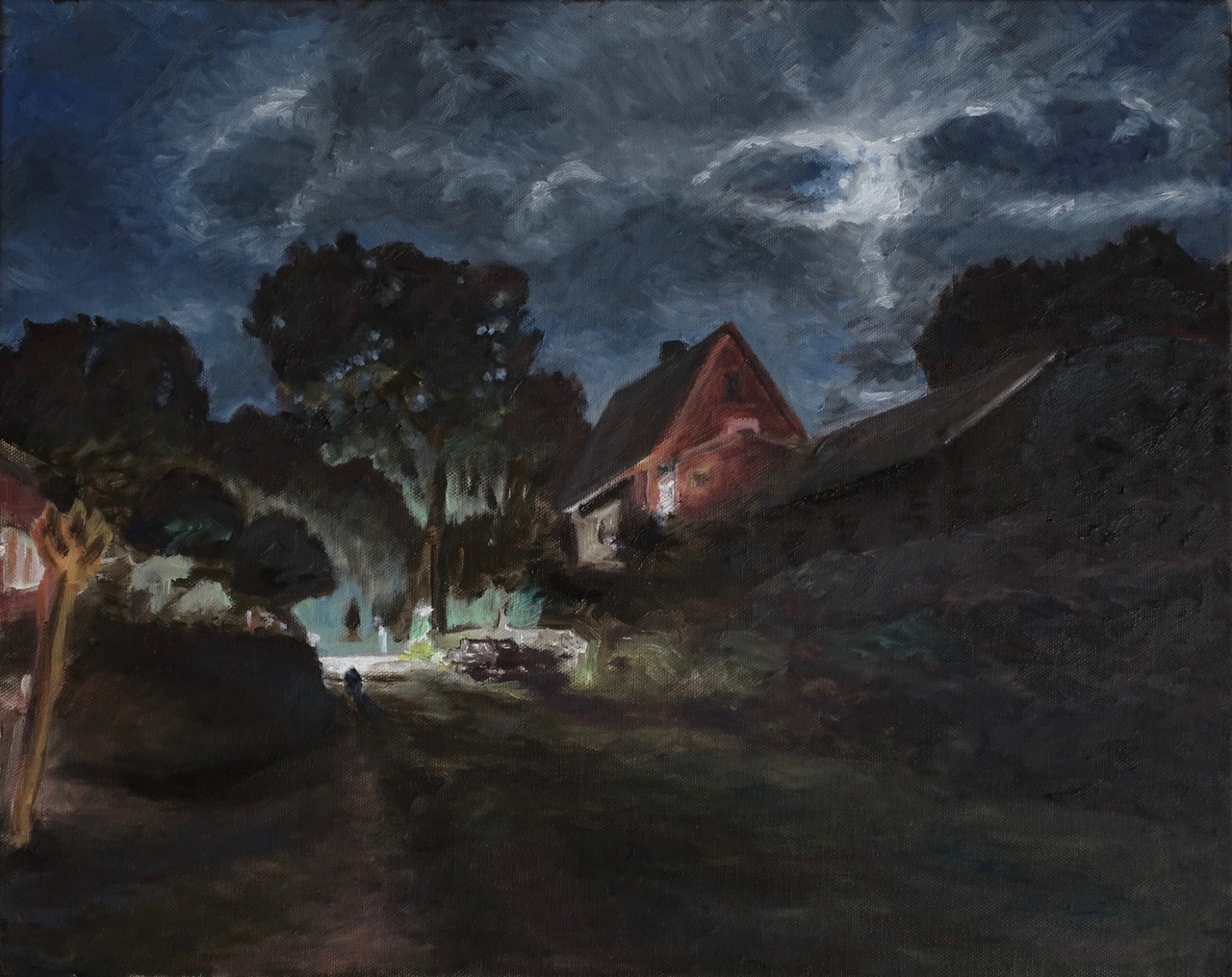 verlaten straat bij maanlicht in Gildehaus (Nedersaksen)
