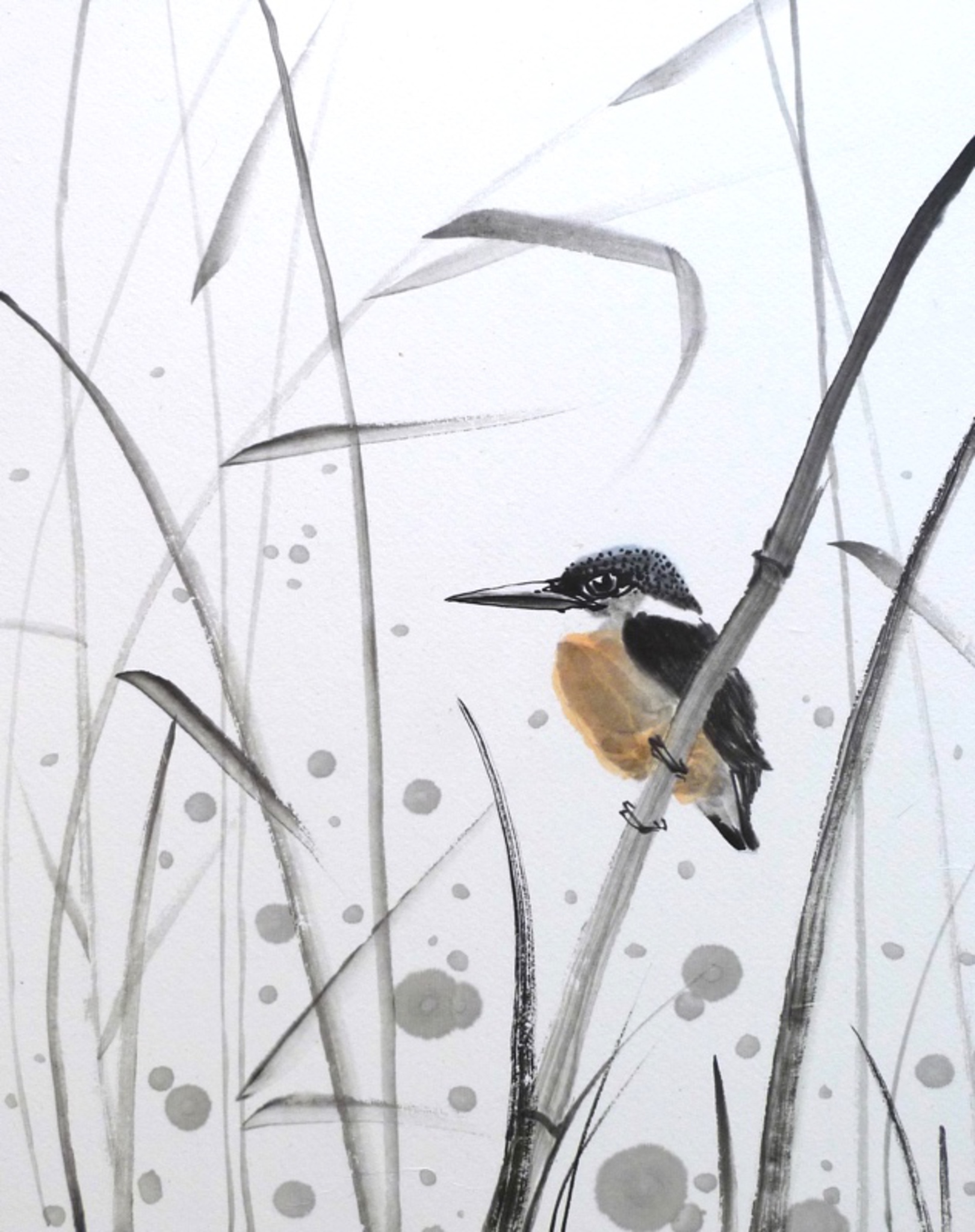 Vogel Water Natuur Painting Inkt Bird Riet Nature Rijstpapier Kingfisher Zenschilderen Inkpainting Sumi-e