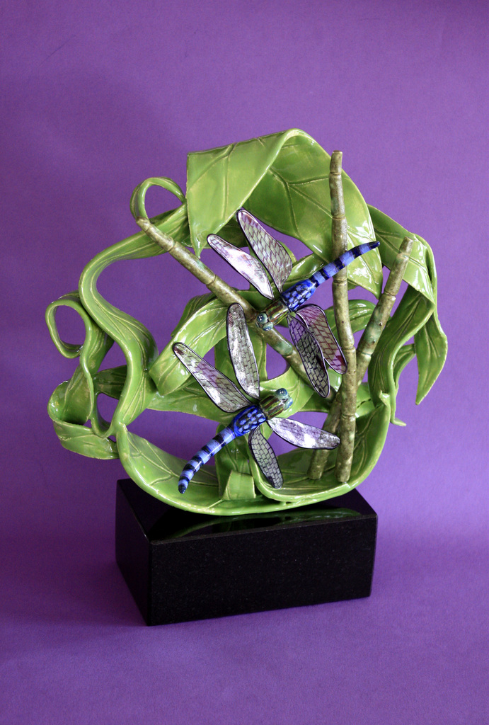 Libellen, keramiek met zwart graniet