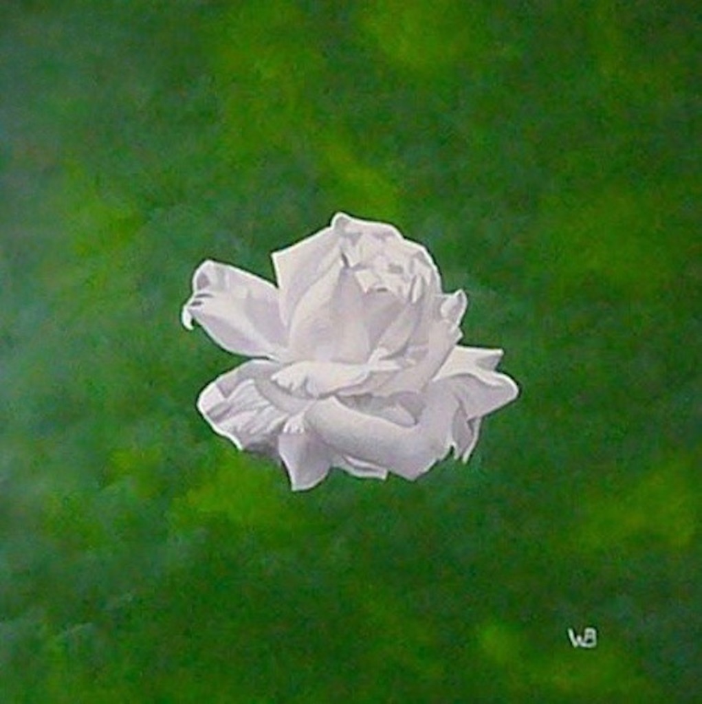 WITTE ROOS IN GROEN/WHITE ROSE IN GREENERY