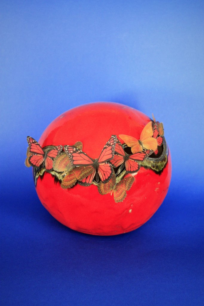 Vlinderbol, keramiek, vlinders op sheet met fotoprint