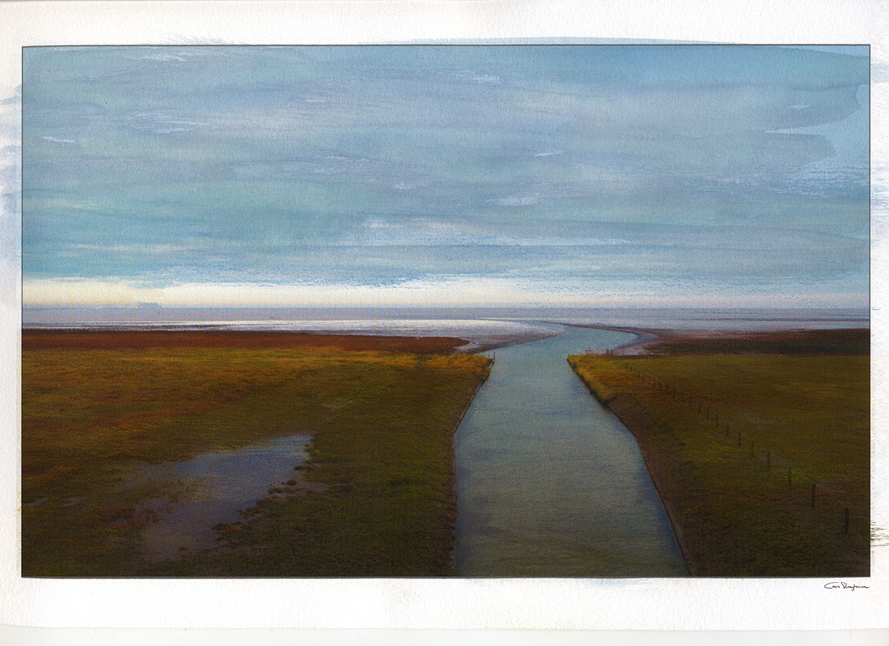 Point on a circle REIZEN NAAR ONBEKENDE LANDSCHAPPEN waar wij zijn geweest verbergt zich het plezier en de troost van ons voorstellingsvermogen. Deze serie is een virtueel reisverslag door het landschap van de innerlijke beleving. Het vertrekpunt is een concrete locatie, in de directe omgeving of verder weg. Op het moment dat ik er was soms onbeduidend, maar achteraf een poortje naar een andere wereld. Met een combinatie van fotografie, compositing technieken, tekenen en schilderen leg ik in mijn werk een relatie tussen de fotografische waarneming en de innerlijke beleving Alles is een cirkel. Maar ik weet zeker dat hij hier begint. VERTREKPUNT - Point on a Circle 2016 Fine Art Giclee print Oplage # 2 van 20 Composite Photography Paint De genoemde prijzen zijn incl BTW, en exclusief passe partout en lijst.