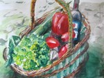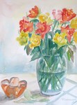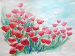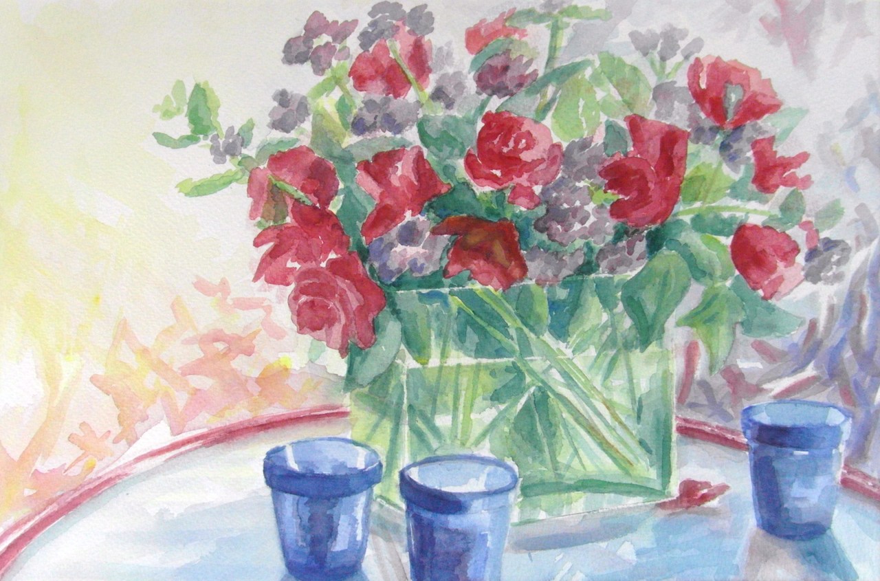 Deze aquarel met rode en paarse rozen heb ik geschilderd met sterke kleuren en vlotte toetsen.
